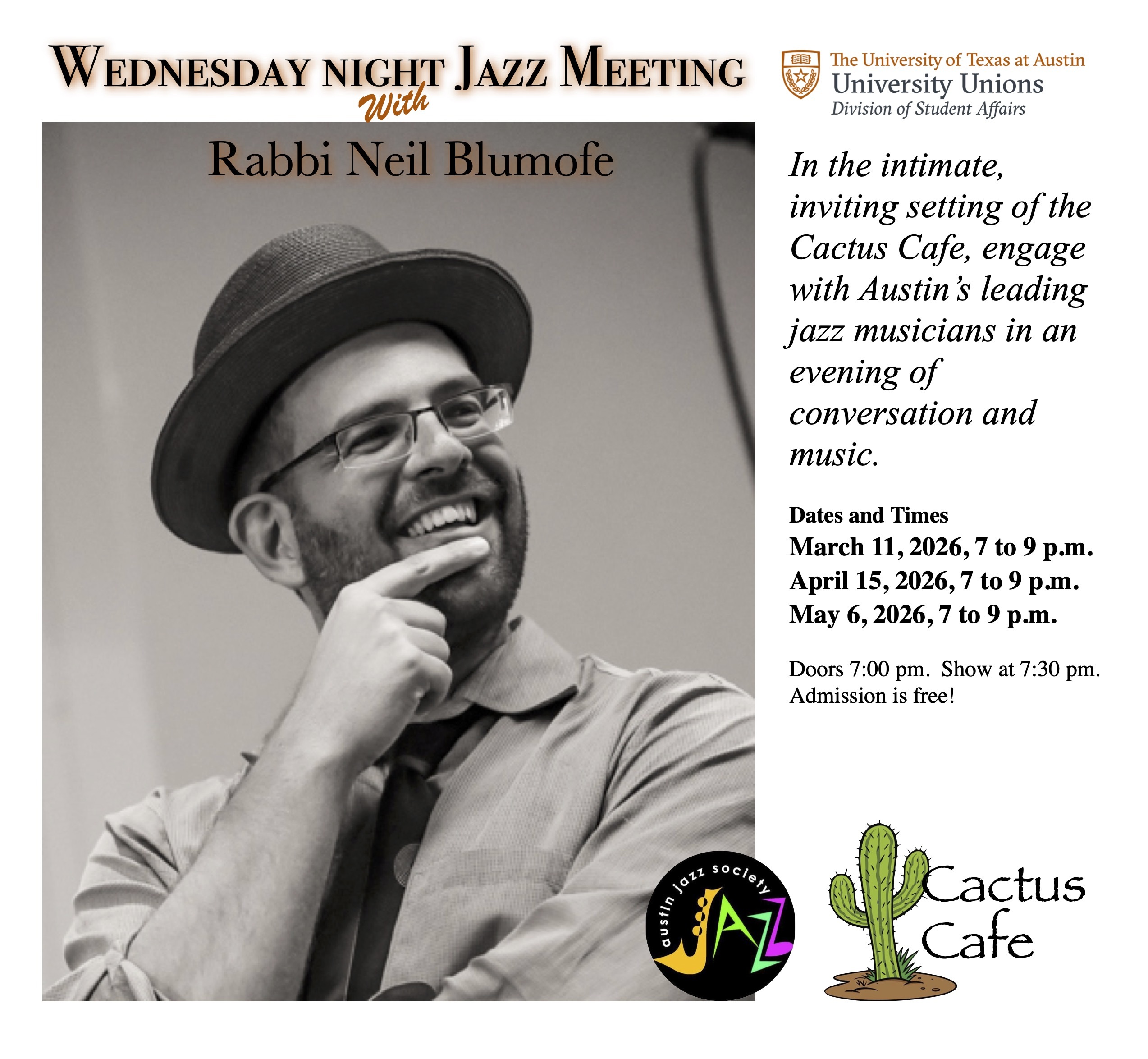 In the intimate, inviting setting of the Cactus Cafe, engage with Austin’s leading jazz musicians in an evening of conversation and music.